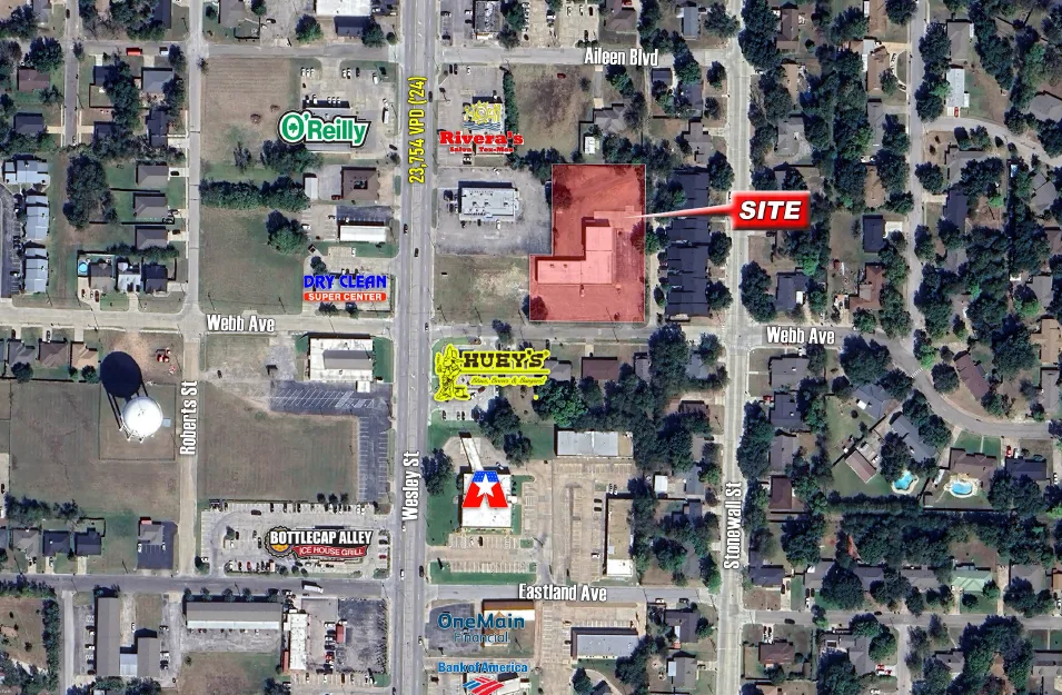 Rare opportunity to lease a versatile ±8,400 SF commercial office-flex property with secured yard access along high-traffic Wesley Street in Greenville, TX. Situated on ±1.02